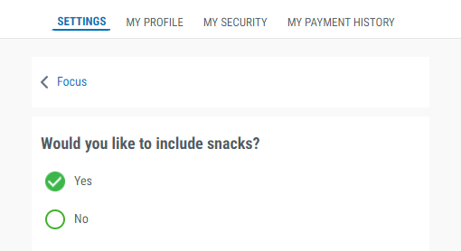 If your Meal Plan is set to Build My Own Meal Plan, you can turn off snacks. If you choose to not have snacks, these servings will be added to your next meal. The morning snack portion will get added to lunch, and the afternoon snack portion will get added to dinner.