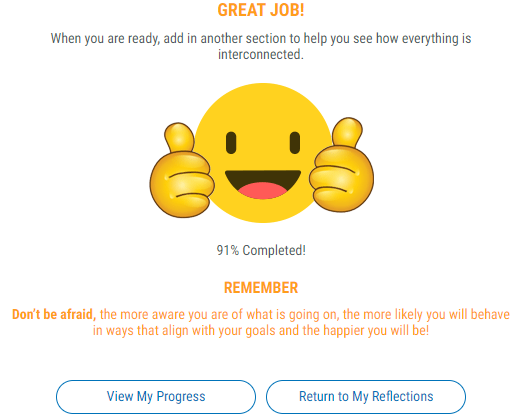 How can I view my progress? 14 November 2023 23:16 Updated There are two ways to view your progress: Option 1: Select Progress under the Mind menu Option 2: Select the View Your Progress button at the end of your daily reflections