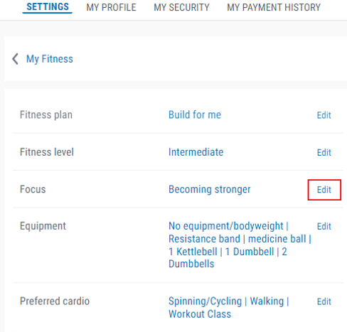 Note: You can click on the i icon for a description on each one. You can choose from becoming stronger, improving cardiovascular health, managing mental health, or focusing on all areas.