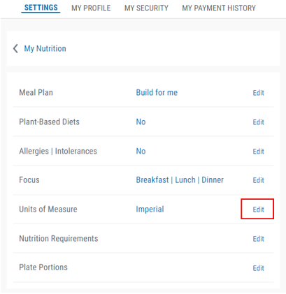 Your Meal Plan units of measurement can be in Imperial (cups, oz, Tbsp, tsp) or Metric (mL, g, kg)