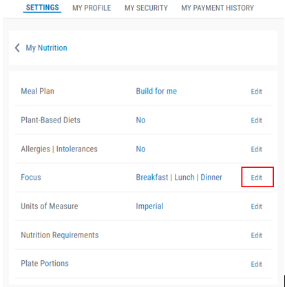 6. Select the Edit button next to Focus